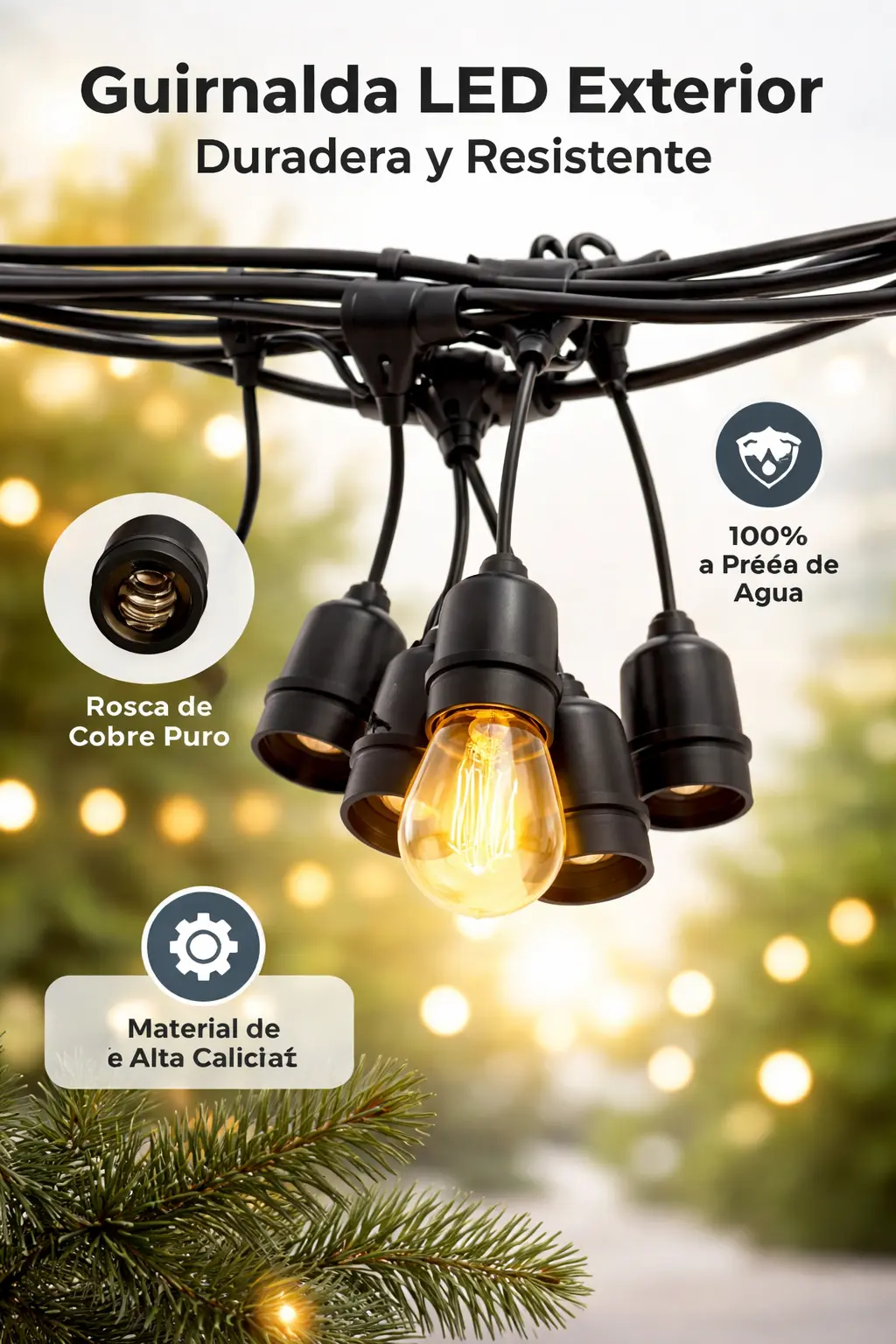 ✨ La guirnalda de 10 bombillas LED de 5 metros es la solución. Con su luz LED de color amarillo cálido, transforma cualquier lugar —interior o exterior— en un ambiente acogedor y elegante. Perfecta para tu arbolito, la pared, el espejo o donde tú quieras, ilumina de forma uniforme y hermosa, haciendo que tu decoración destaque sin esfuerzo.